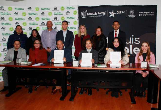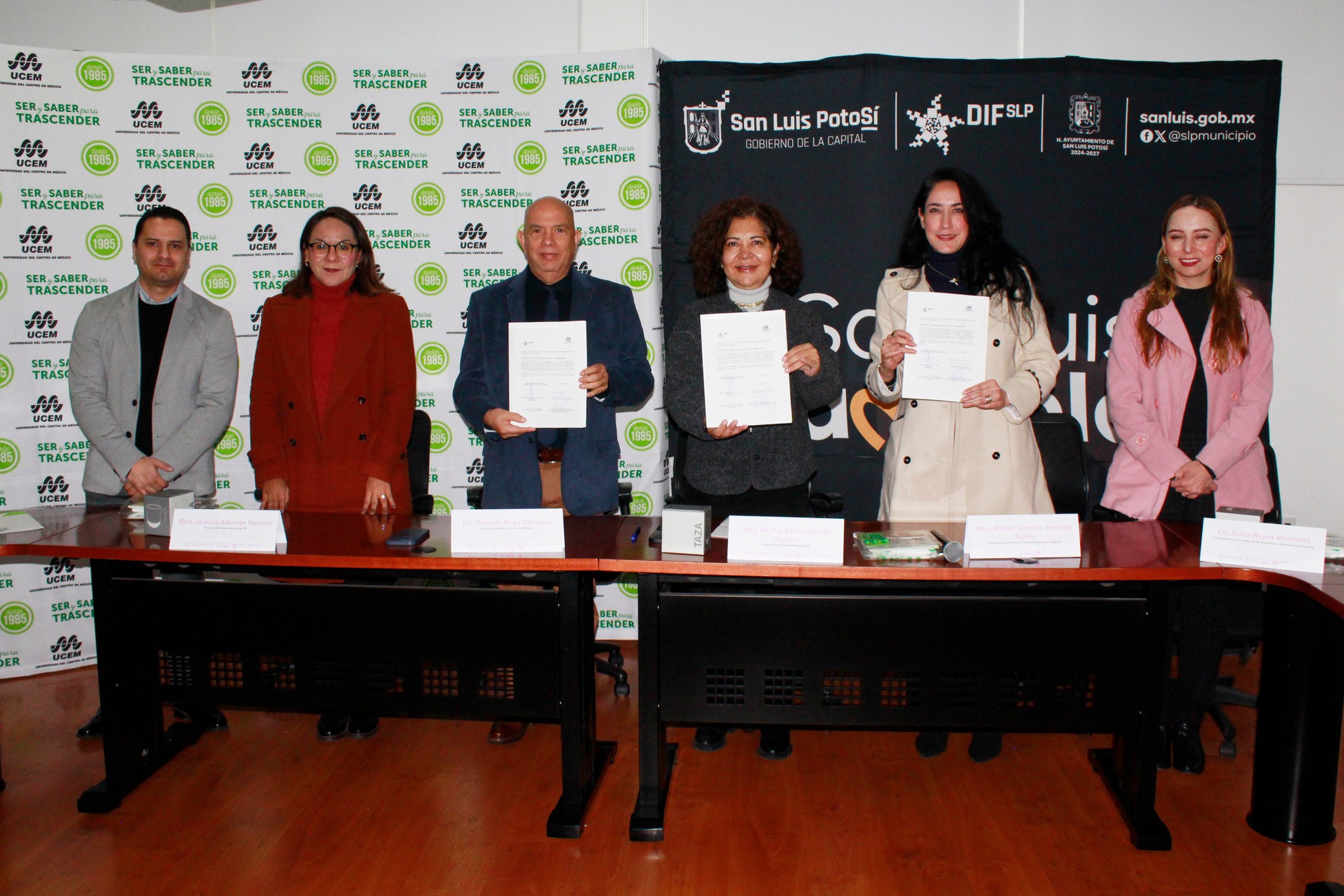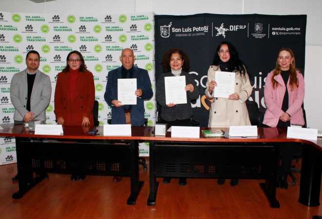 La Universidad del Centro de México (UCEM) firmó un importante convenio de colaboración con el DIF Municipal, representados por sus autoridades, la Mtra.Estela Arriaga Márquez y el P. Gerardo Maya González respectivamente, con el propósito de fortalecer la formación profesional de sus estudiantes mediante la realización de prácticas profesionales y servicio social en programas de impacto comunitario.